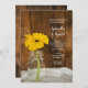 Convide os convidados para uma celebração honrando a noiva e o noivo para estarem com a excitada e rústica Margarida Amarela no Convite de festas do Mason Jar Country Barn. Este convite à festa de noivado rústica casual, porém clássico, apresenta uma fotografia floral ligeiramente melhorada, digitalmente melhorada, de um frasco de conservas de vidro cheio de flor margarida amarela e de um fundo de madeira de celeiro de curtumes castanhos.