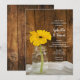 Convide os convidados para celebrar a noiva e o noivo recém-casados na manhã após a cerimônia de casamento com o brunch pós-casamento relaxado e rústico no estilo Yellow Daisy em Mason Jar Country. Este convite personalizado casual, porém sofisticado, para o café da manhã ou almoço pós-casamento, apresenta uma fotografia floral encantadora de um jarro de conserva de vidro repleto de flores de margaridas amarelas e um fundo de madeira de celeiro marrom desgastado. Perfeito para inspiração ou ideia para uma celebração informal de festa no celeiro. Disponível como convite impresso para envio ou como download digital para compartilhamento fácil online.