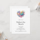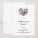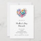 Um convite de brunch do Dia das Mães com uma bela ilustração. Um buquê em forma de coração de flores em azul pastel, verde, roxo e amarelo. Com uma linda borboleta azul pairando na frente.