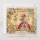 Marie de vestido rosa quente numa bola em Versailles. Rosas rosa e rico de ouro rodeiam a cena. A escrita francesa escrevendo ao fundo.