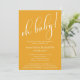 Convite Marigold, Script Moderno do chá de fraldas - Um design simples e moderno e minimalista que apresenta Oh Baby! em uma fonte moderna, escrita. Mostrado alegre, Marigold.