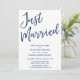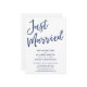 Convide seus convidados para a celebração do seu casamento com a ajuda desses cartões de convite minimalistas e sofisticados em azul-marinho sobre branco. No design, eu usei uma fonte manuscrita casual e moderna para criar uma sobreposição de tipografia gráfica com a frase "Recém-casados". Preencha os espaços em branco do modelo com seus detalhes para personalizar o design. Todas as camadas foram deixadas desbloqueadas para que você também possa clicar para personalizar ainda mais e reposicionar o texto ou até mesmo alterar tamanhos ou fontes. A cor do fundo foi deixada branca, mas isso também é editável. Por favor, não hesite em entrar em contato para obter ajuda com a personalização.