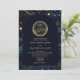 Crie uma primeira impressão mágica com este convite de casamento celestial, apresentando um fundo azul-marinho profundo, detalhes celestiais elegantes em dourado e um design de monograma refinado no topo. Inspirado pelo céu noturno, estrelas e simbolismo cósmico, este convite traz um senso de romance, mistério e elegância atemporal.