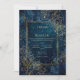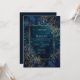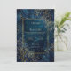 Transporte seus convidados para um jardim etéreo à meia-noite com este deslumbrante design. O fundo azul-marinho profundo e aveludado ganha vida com um brilho hipnótico de poeira dourada e folhas azuis cintilantes com veias douradas intrincadas. Ramos dourados graciosos se estendem para dentro a partir dos cantos, enquadrando os detalhes do seu evento com um senso de luxo tranquilo e romance celestial. Essa composição atmosférica captura uma vibe sonhadora e sofisticada que é perfeita para uma celebração elegante realizada sob as estrelas. Este é um convite de casamento projetado para cerimônias formais noturnas, celebrações na floresta encantada ou eventos temáticos celestiais luxuosos.