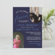 Festa de aposentadoria elegante convida com Fora do escritório para sempre, um design de tipografia limpo com fontes brancas e azuis contra um fundo azul marinho, com duas fotos da aposentadoria em modelos de fotos em forma de arco, uma no topo e outra no fundo. Convite de festas de aposentadoria de fotos personalizado com o nome, o título e a foto do aposentado. Convide amigos, colegas de trabalho e membros da família para a festa que comemora a aposentadoria de si mesmo ou do seu marido, pai, irmão ou amigo com este elegante convite para comemoração da retirada fotográfica.