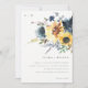Convite Marinho Amarelo Girassóis Watercolor Casamento Flo
