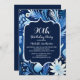 90 convite de aniversário com flores azuis empoeiradas sobre fundo azul marinho. Entre em contato comigo para obter assistência com suas personalizações ou para solicitar outros produtos Zazzle correspondentes ou coordenadores para sua celebração.
