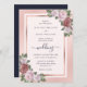 Elegante marinho azul, blush e rosa ouro convite para casamento floral.