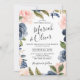 O belo convite de casamento floral boho apresenta gráficos florais pintados manualmente com aquarela/rosas em tons ricos de azul-marinho e cor-de-rosa-pincel/pêssego e uma fonte encantadora de estilo de letreiros manuais. Entre em contato comigo para obter ajuda sobre a personalização ou se você precisar de outro produto com este design.