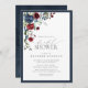 Convite Marinho Azul Borgonha Floral Chá de panela