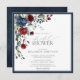 Convite Marinho Azul Borgonha Floral Chá de panela