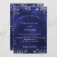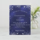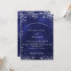Um fundo azul marinho, decorado com falso brilho prateado, faíscas. A cor azul é irregular. Personalize e adicione seus nomes e detalhes. Adicione a url do site do casamento para detalhes do casamento e RSVP.