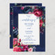 Marinho azul burgundy flores vintage rosas convite para casamento modelo download instantâneo com código QR RSVP, basta adicionar seu endereço url e zazzle irá gerar seu código