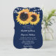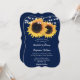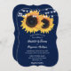 Este convite de casamento floral rústico com girassóis contra um fundo azul de burlap marinho é perfeito para convidar seus convidados para sua festa de casamento azul-marinho inspirada pelos girassóis.