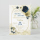 Bonito convite botânico para casamento, com marinho marfim azul branco e flores douradas com folhas de ouro em uma cápsula de ouro. São simulados os detalhes do brilho dourado. É adequado tanto para os convites para o casamento como para o noivado. PARA MAIS PRODUTO CORRESPONDENTE, clique na coleção acima ou entre em contato comigo.