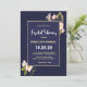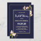 Convite Marinho Azul de Quadro Dourado Floral Blush Chá de