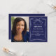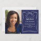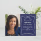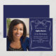 Um fundo azul marinho, decorado com um arco e uma armação desenhados à mão branca. Personalize e adicione uma foto, nome e detalhes da festa.