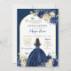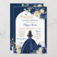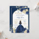Convite Marinho Azul Dourada Princesa Floral Quinceañera