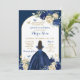 Marinho Azul Dourado Princesa Floral Quinceañera Convite