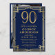 Convite Marinho Azul Dourado 90 de Aniversário Festa surpr
