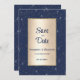 Este elegante marinho azul e ouro, confete de luxo Casamento Salve a Data Convite é inspirado pelo simples e elegante foi, mas com sutis pistas de influência moderna. Ele apresenta um centro quadrado de ouro de champanhe em um fundo azul brilhante de marinho e ouro. Este design clássico e de luxo será um grande sucesso para todos os seus convidados. Todas as designs são impressas.