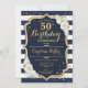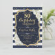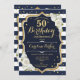 Convite Marinho Azul, Dourado Foto 50º Aniversário