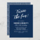 O dobro dos aniversários significa o dobro da diversão! Nossos simples, modernos, mas clássicos convites de festas conjuntos dão o tom para sua celebração sem esforço. Apresentando um fundo azul-marinho de tendência e um traço de humor com a frase 'duas vezes a diversão', esses modelos são fáceis de personalizar, fazer planejando uma brisa. Atrevo-se a diferenciar o seu evento do convite!