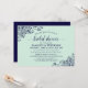 Este belo chá de panela é simples e elegante. Ele apresenta uma elegante caligrafia azul de marinho em um fundo verde-colorido de mint branco-claro com fritos florais herdados nos cantos. Ele tem informações sobre o chá, bem como RSVP e Registro. Uma maneira perfeita de celebrar a noiva de estar em estilo!