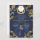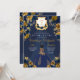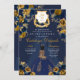 Marinho Azul e Dourado Quinceanera, Elegante Floral, Convite de Aniversário