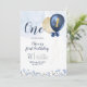 Marinho Azul e Dourado Balão Menino Primeiro Convite de Aniversário