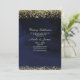 Convite Marinho Azul e Dourado Moderno Moody Watercolor