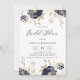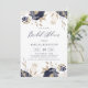Convide convidados para o seu evento com este chá de panela. Apresenta flores azuis e marfim de marinho aquoso com acentos falsos de folha de ouro. Personalize adicionando seus próprios detalhes. Este chá de panela floral é perfeito para qualquer estação e tema.