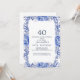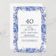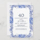 Celebre em estilo com este elegante convite para aniversário de 40 anos floral. Apresentando uma fabulosa camada aquosa de marinho azul e flores cor-de-rosa pinceladas sobre um sofisticado fundo azul-lacrimogêneo, este design é perfeito para uma celebração de aniversário de eterno e classe. Personalize com seus detalhes do evento para criar um convite bonito e memorável!