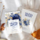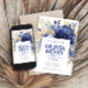 Convite Marinho azul e ouro elegante cor d'água floral de