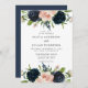 Convite Marinho Azul e Rosa de Blush Casamento Floral de A