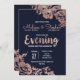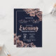 Convite Marinho Azul e Rosa Dourada Noite Floral