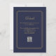 Linhas geométricas elegantes enquadram seu conjunto personalizado de informações de casamento em tipografia de ouro em um fundo azul marinho. Com os seus detalhes e o site de casamento Código QR no verso. Projetado por Thisnotme©
