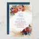 Poeira e terracota, azul marinho, tons de ferrugem flores convites para bebês elegantes botânicos