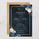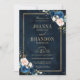 O belo convite de casamento geométrico floral do boho moderno apresenta gráficos florais de cor d'água pintados à mão / rosas em tons ricos de azul marinho e cor-de-rosa pincel / pêssego sobre fundo azul marinho de cor d'água. Entre em contato comigo para obter ajuda sobre a personalização ou se você precisar de outro produto com este design.