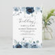 Convite para casamento floral de cor d'água elegante. Belo convite para o casamento floral moderno, com flores pintadas à mão em azul-poeirento, azul-escuro marinho e um roteiro elegante de caligrafia. Você pode personalizar o texto, o estilo da fonte, a cor e o tamanho em frente e atrás do convite. Por favor, sinta-se à vontade para contactar-me para obter os itens correspondentes.