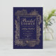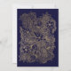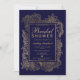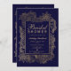 Um chic moderno, bonito e elegante e falso-ouro, que é desenhado floral com um convite de festas de chá de panela elegante de ouro falso numa mão pintada marinho de fundo azul