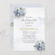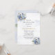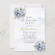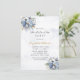 Design apresenta um elemento floral impresso em tons de azul empoeirado e ouro sobre folhas verdes e floradas de pedras e rosa. Excelente para as comemorações do casamento!