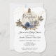 Convite Marinho Azul Floral Branco Madeira w Chá de fralda