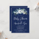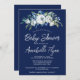 Convite Marinho Azul Floral Elegante Chá de fraldas Modern