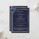 Um elegante programa de 2 páginas. Um fundo azul escuro, um falso quadro prateado, florais azuis e espaço para uma foto. Personalize e adicione nome, datas e texto.