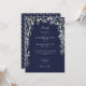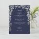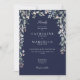 Lindas flores verdes florais e flores silvestres enquadram seus detalhes especiais de celebração de casamento em tipografia branca elegante em um fundo azul-marinho chic. Projetado por Thisnotme©