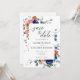 Mão elegante pintou cor d'água queimada laranja e marinho azul boho floral Salve o cartão de data. Trabalho de arte de aquarela original. Uma parte de uma suíte de casamento completa. Vá para Personalizar link Adicional para alterar a fonte, o tamanho e a cor. Sinta-se livre para me contactar para obter itens correspondentes.