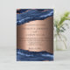 Um convite de casamento moderno e moderno. Ouro azul e rosa, fundo de mármore. Personalize e adicione seus nomes e detalhes.