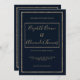 Convite Marinho azul ouro caligrafia manuscrita, casamento