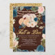 Convite Marinho Azul Pêssego Floral Pumpkin Chá de panela